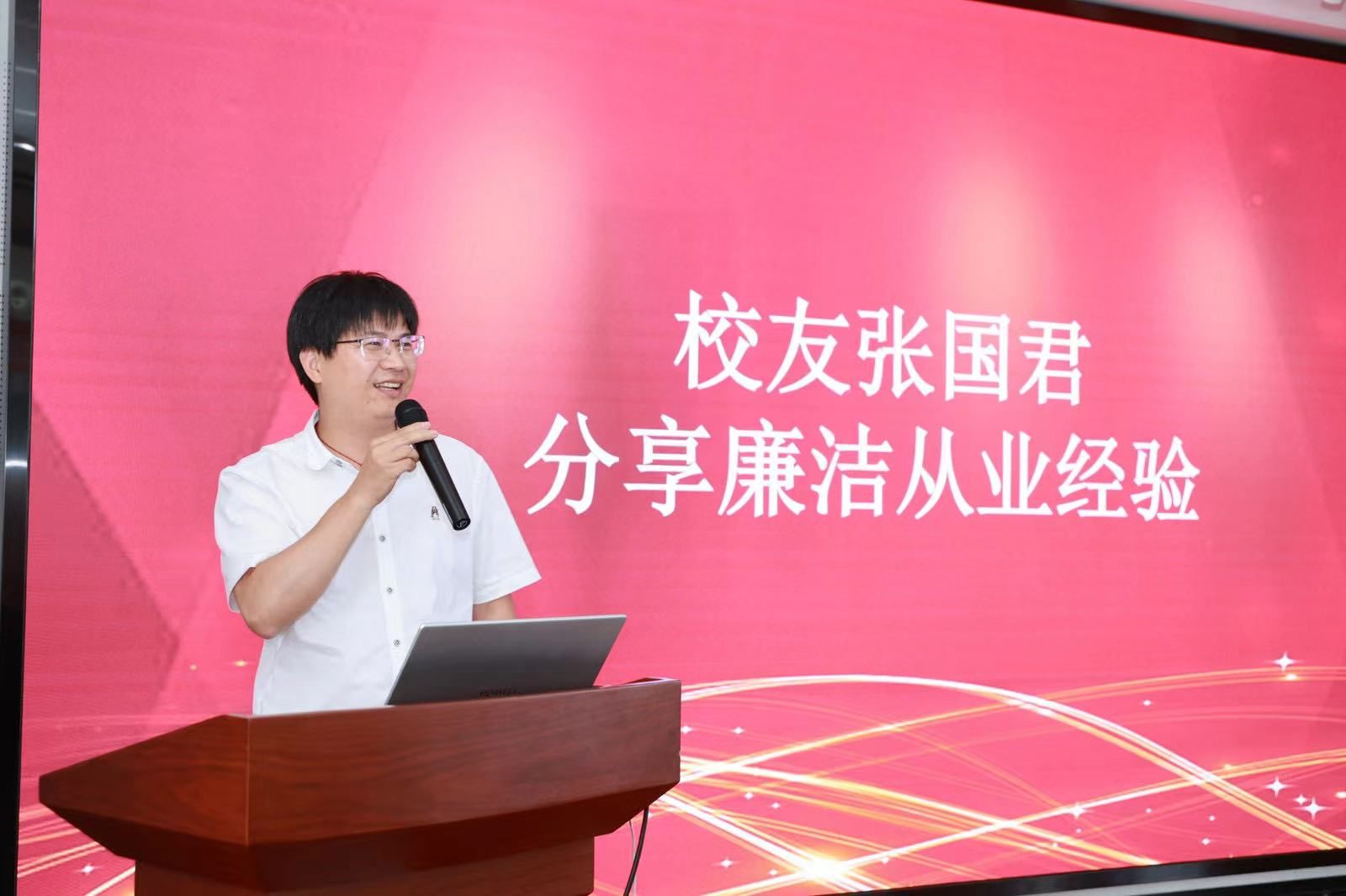 随后,捷克论坛 1997级校友张国君分享了自身22年的就业创业经历,勉励学弟学妹清清白白做人、堂堂正正做事,要有“长期主义”智慧,学会取舍。