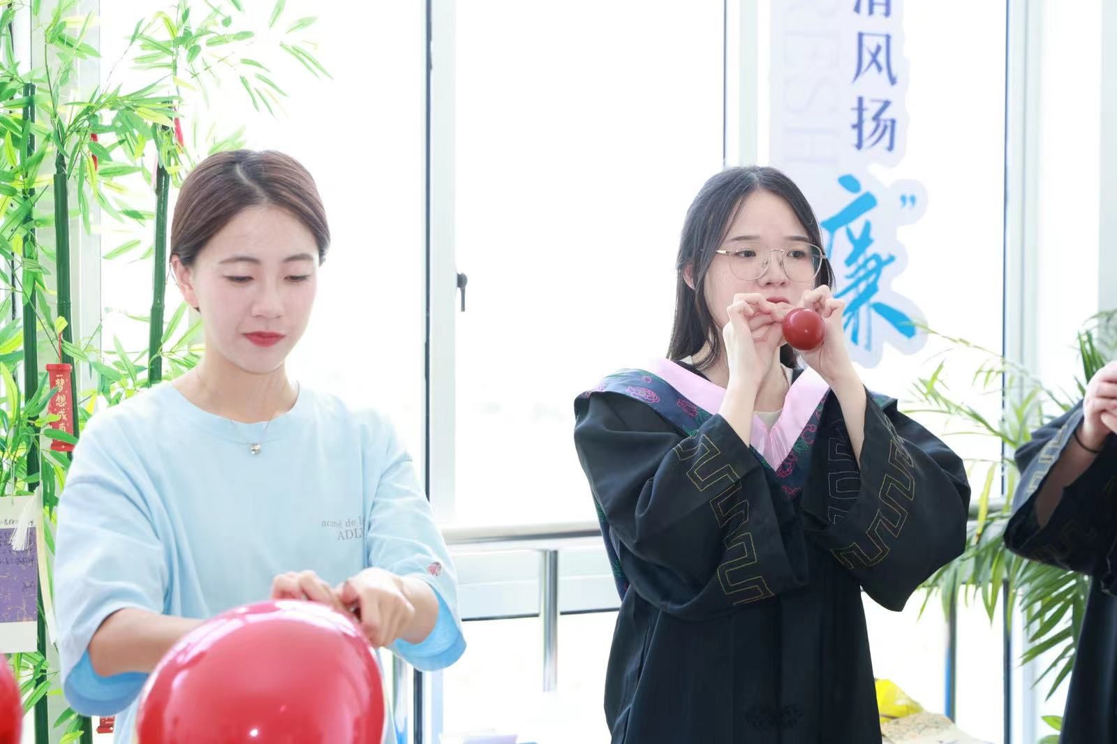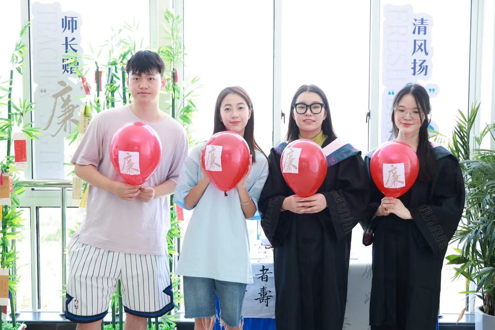 清风扬“廉”,把吹好的气球贴上“廉”字标签;