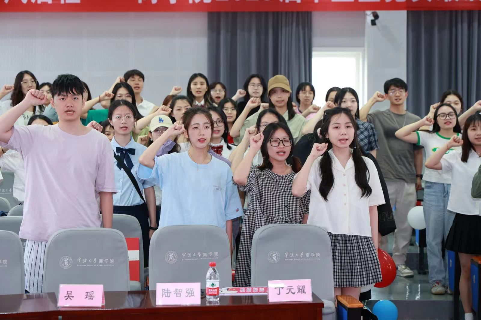 本科生第四党支部的朱佳慧、本科生第三党支部的吴小钰分享了自己在校的廉洁教育经历和现场感悟,两位党员纷纷表示会牢记学院老师们的教诲,走好自己的人生路。随后,全体在场党员进行了廉洁从业宣誓,在宣誓中肩负起每个人作为一名学生党员的理想信念、责任担当。