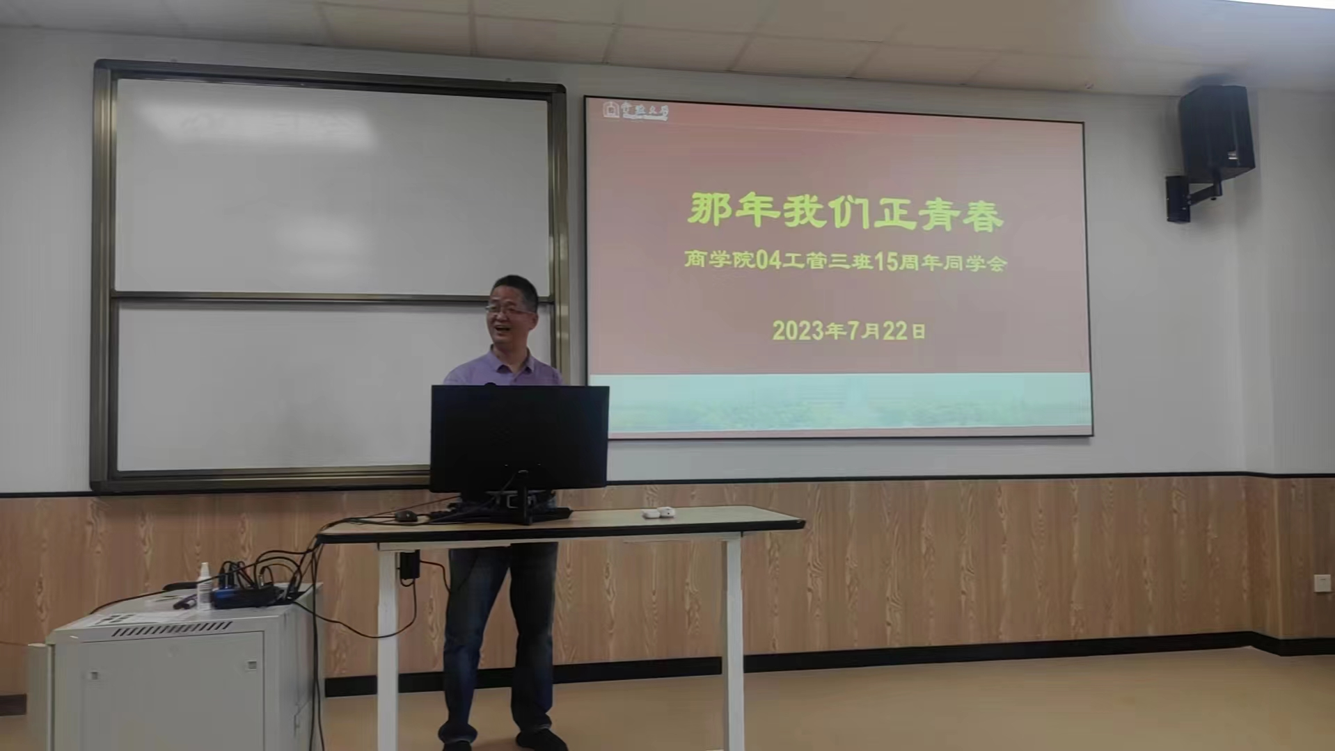 7月22日下午,04工商管理3班在捷克论坛 314教室举行毕业十五周年班会。班会由该班班主任朱福建主持。