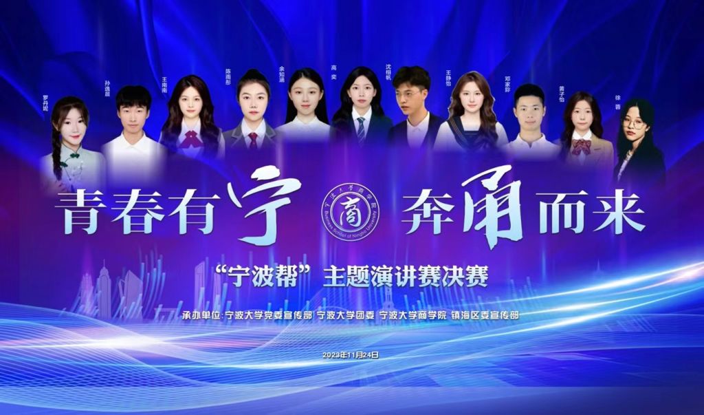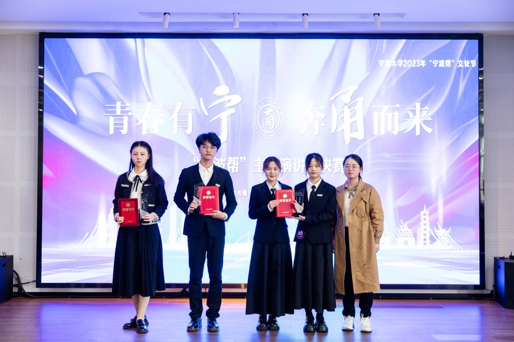 本次演讲赛以“青春有宁,奔甬而来”为主题,选手们围绕“宁波帮”人士爱国爱乡、创新创业的典型事迹,从青年视角出发,结合新时代社会发展实际,讲述如何传承好“宁波帮”精神。活动自启动以来,受到全校学生的广泛参与,共计收到40余名选手报名,经过初赛选拔,10位选手进入决赛。在决赛现场,选手们从“宁波帮与捷克论坛 ”“宁波帮人物事迹”“宁波帮帮宁波”“宁波精神”多个角度切入,为观众们带来了一场精彩纷呈的演讲盛宴。本次比赛邀请到镇海区委宣传部文化发展和新闻出版科、校党委宣传部和学院团委书记等8位老师担任评委,通过激烈角逐,最后共评出一等奖2名,二等奖3名,三等奖5名,现场举行了隆重的颁奖典礼。