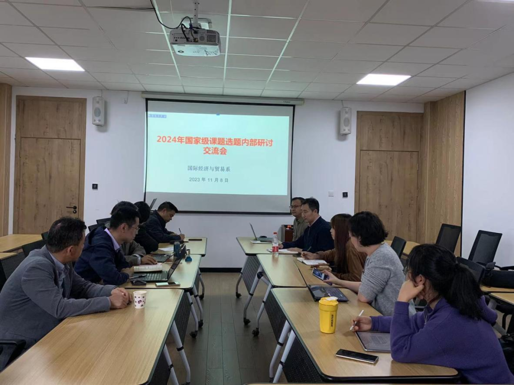 为推进国家级课题申报,增强系里学术交流的氛围,国际经济与贸易系于11月8日下午召开国家级课题申报选题研讨会。本次会议由系项目部主任叶劲松副教授主持,钟建军、孟醒、刘晓丹和王腾飞四位老师进行选题汇报,邀请杨丽华教授、张海波教授、丛海彬教授、陈钧浩副教授和董楠楠副教授作为点评嘉宾。国贸系楼朝明副教授等其他老师也参与了本次会议。