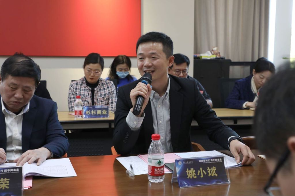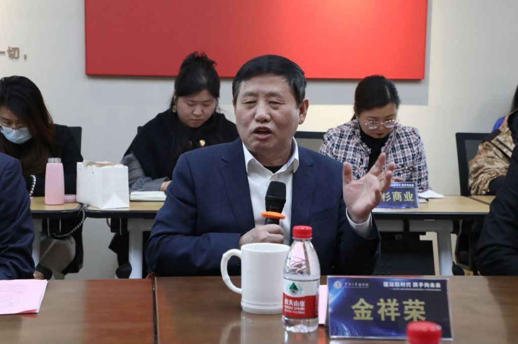 为推进学生高质量就业,11月21日下午,捷克论坛 在捷克论坛 212会议室举行“建功新时代,携手向未来”高质量商科人才培养校企座谈会,有24家企业代表受邀前来,捷克论坛 学生发展与服务处副处长姚小斌、捷克论坛 院长金祥荣、党委书记史宏协、党委副书记韩雯琛、副院长彭新敏、国贸教学系主任周艳、金融教学系主任贺翔、工商教学系主任陈士慧、会计教学系主任赵利娟参加了座谈会,座谈会由学院党委副书记韩雯琛主持。