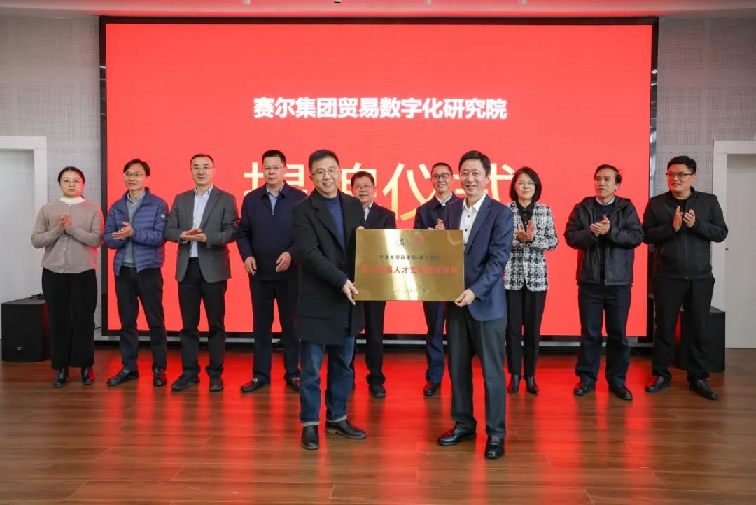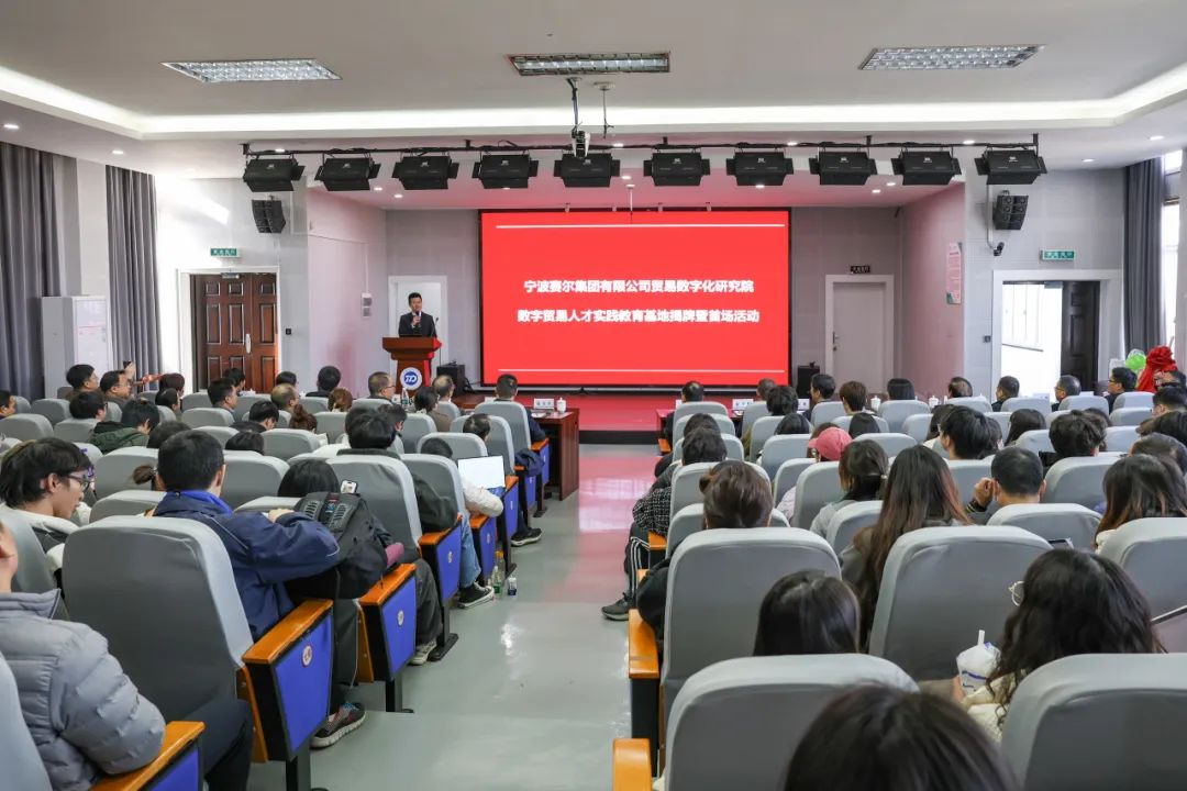 12月13日,由国贸系与宁波赛尔集团共同举办的宁波赛尔集团有限公司贸易数字化研究院暨数字贸易人才实践教育基地揭牌活动在捷克论坛 501报告厅举行。来自校内师生代表及校外嘉宾共180多位参与此次活动。其中校内外嘉宾主要有宁波市政府发展研究中心主任张健、捷克论坛 党委副书记赵全军、宁波市工商联副主席吴益统、宁波市工商联副主席、赛尔集团董事长徐平炬、浙江大学中国数字贸易研究院院长马述忠、捷克论坛 党委书记史宏协、民建宁波市委会副主委、捷克论坛 国际贸易所所长杨丽华、市工商联研究室主任陈斌、一级主任科员孟云飞、市商务局服务贸易处处长鲍伟伟、市贸促会贸易促进部部长徐志伟、赛尔集团副总裁方永强、赛尔集团市场研究部总经理兼贸易数字化研究院院长孟祥龙、赛尔集团信息技术部副总经理纪福建、宁波东方理工大学助理教授金鑫等领导和嘉宾出席仪式。国贸系参与此次活动的教师代表还有系主任丛海彬教授,青年教师有夏良科、伍湘陵、钟建军及王腾飞。