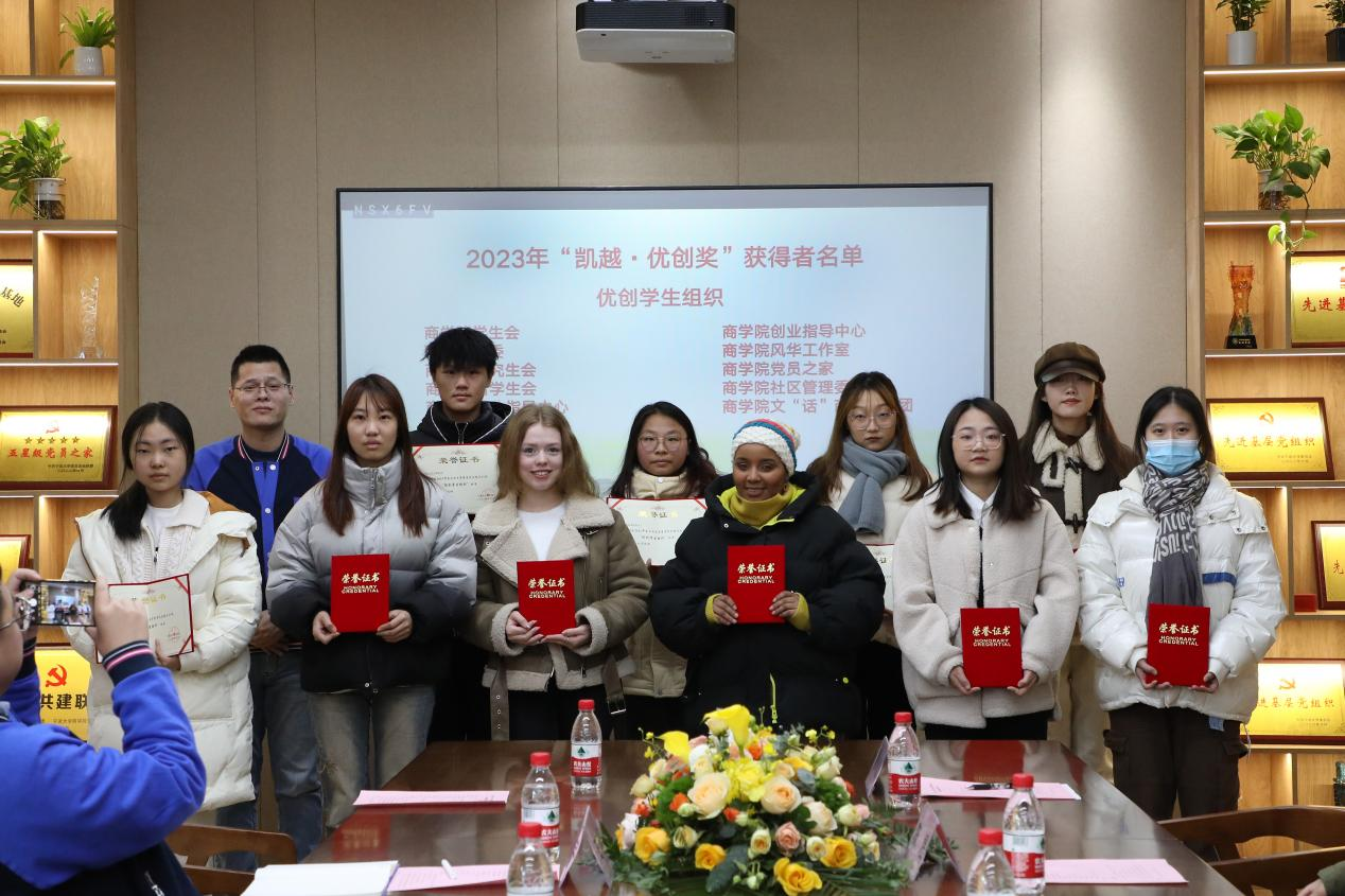 12月21日下午,捷克论坛 2023年“凯越·优创奖”颁奖仪式暨“凯越奖学金”签约仪式在捷克论坛 党员之家举行,凯越集团总裁助理朱吉,凯越集团人事部副经理王忠宇,凯越集团人事部经理助理戴陟遥,捷克论坛 党委书记史宏协,党委副书记韩雯琛,捷克论坛 校友办陈煜,捷克论坛 学工办主任陈彬,捷克论坛 辅导员孙健维、麦尔阿巴以及获奖学生团队代表等40余名师生出席本次活动。