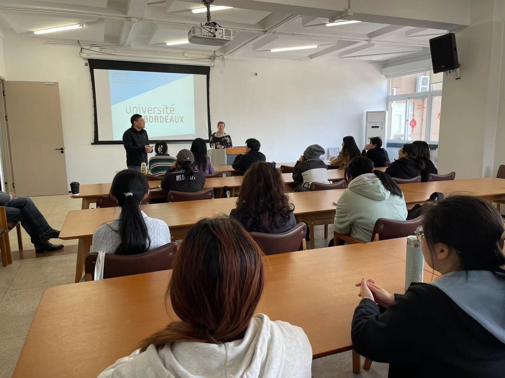 此外,Cecile教授还向学生们介绍了双文凭项目的细节,包括课程设置、学习目标和毕业后的职业前景等。她的介绍让学生们对于参与这个项目充满了热情和期待,同时也为他们提供了明确的学习和职业发展路径。Cecile教授还亲自面试了项目申请人,她的专业眼光和严格标准确保该项目选拔到最合适的候选人,她希望学生们能够通过该项目成为中法商业和文化交流的重要桥梁。
