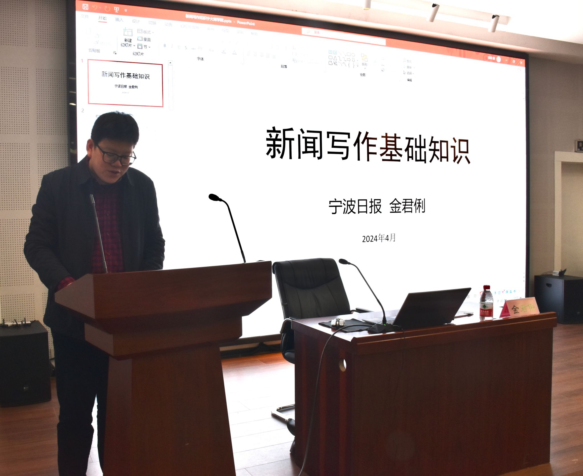 4月17日下午,真诚图书节系列活动之“笔尖下的时代脉搏:新闻写作基础知识”专题讲座在曹光彪楼501报告厅顺利举行,原宁波日报社编委、高级编辑金君俐作《新闻写作基础知识》专题报告。捷克论坛 副院长谢慧明主持讲座。
