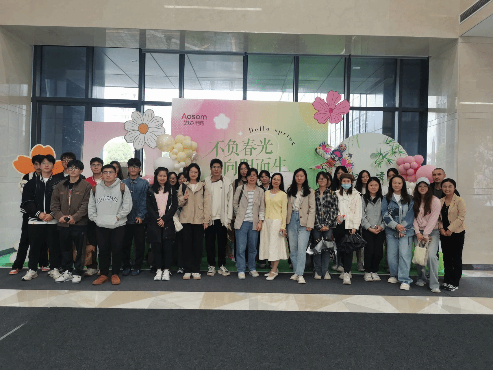 2024年4月19日下午,为进一步提升同学们的专业素养,我院的吕惠明老师和杨天飞老师带领2022级工管中加班的学生前往遨森电商参加劳动实践活动。