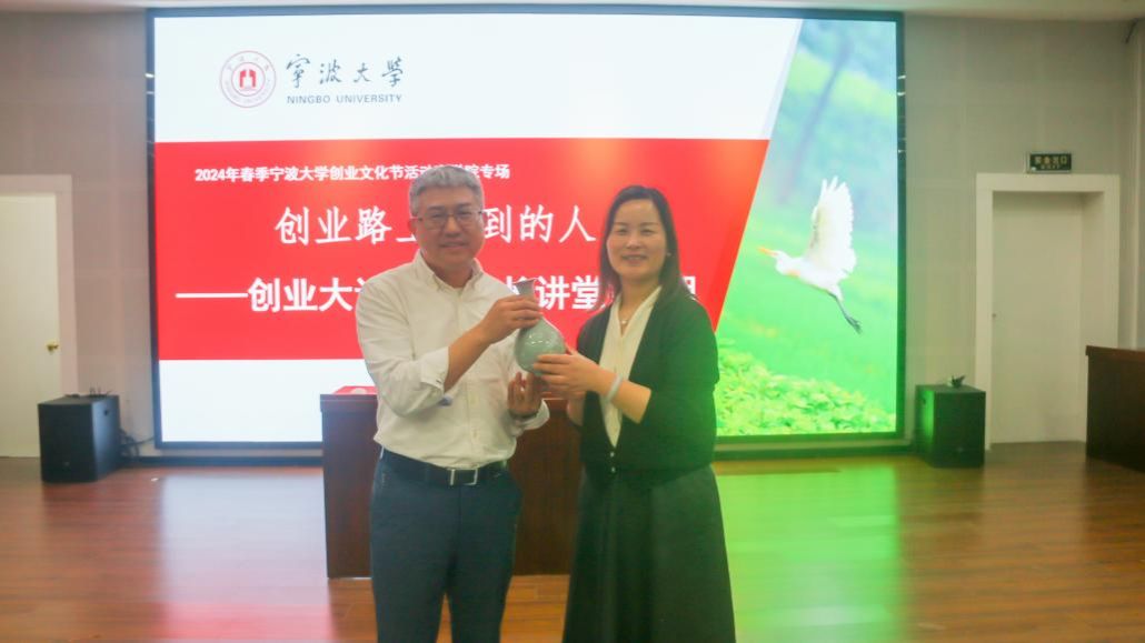 随后,韩雯琛代表学院为朱灵峰校友赠送纪念品。