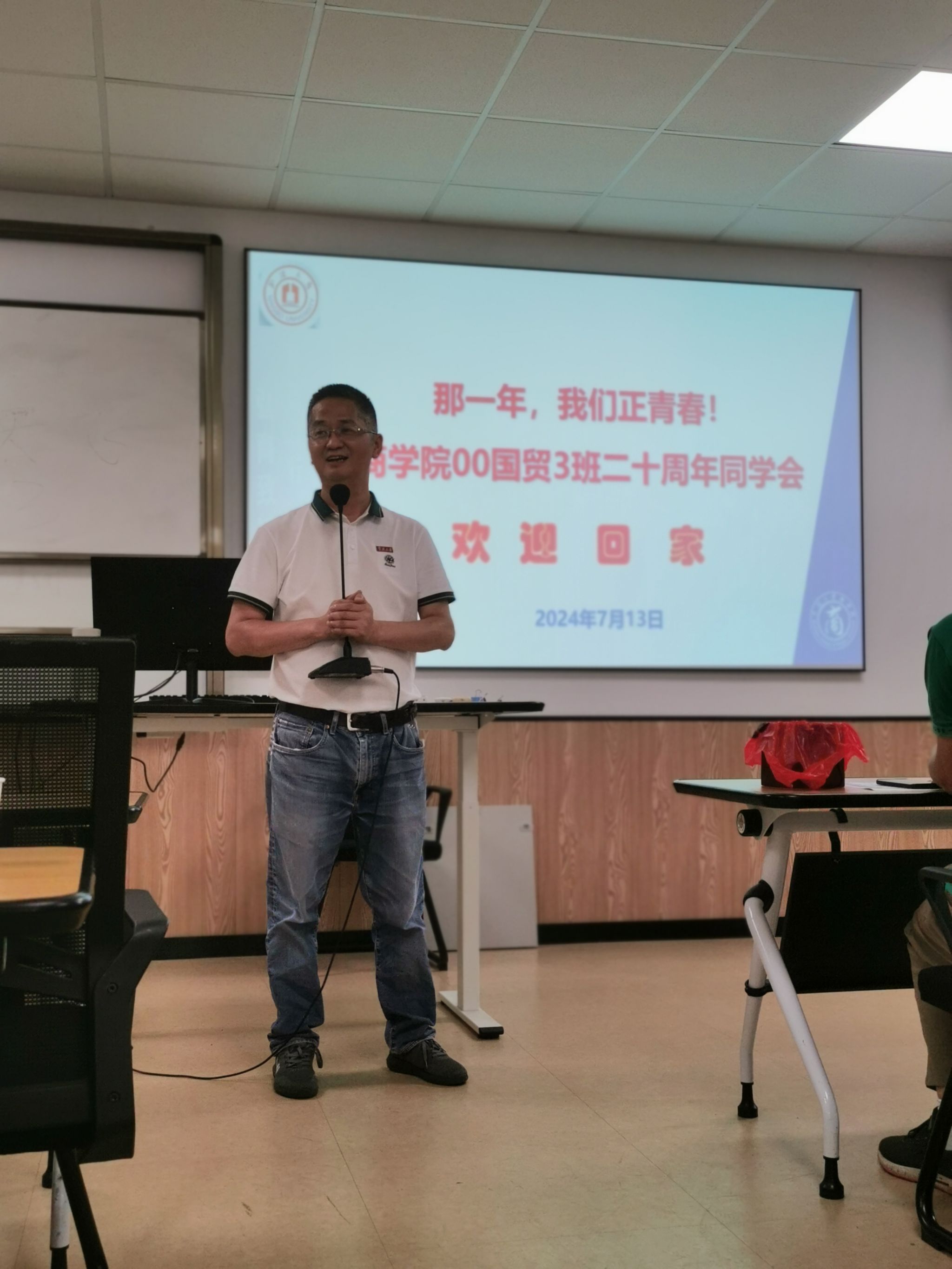 7月13日下午天气闷热,但捷克论坛 大楼314会议室欢声笑语,迎来了00级国贸3班毕业二十周年的同学会。来自全国各地近40名校友带着对母校的深深眷恋、对老师同学的浓浓思念,相聚母校,回忆二十年前的青春往事。班主任朱福建老师应邀参会并主持活动。