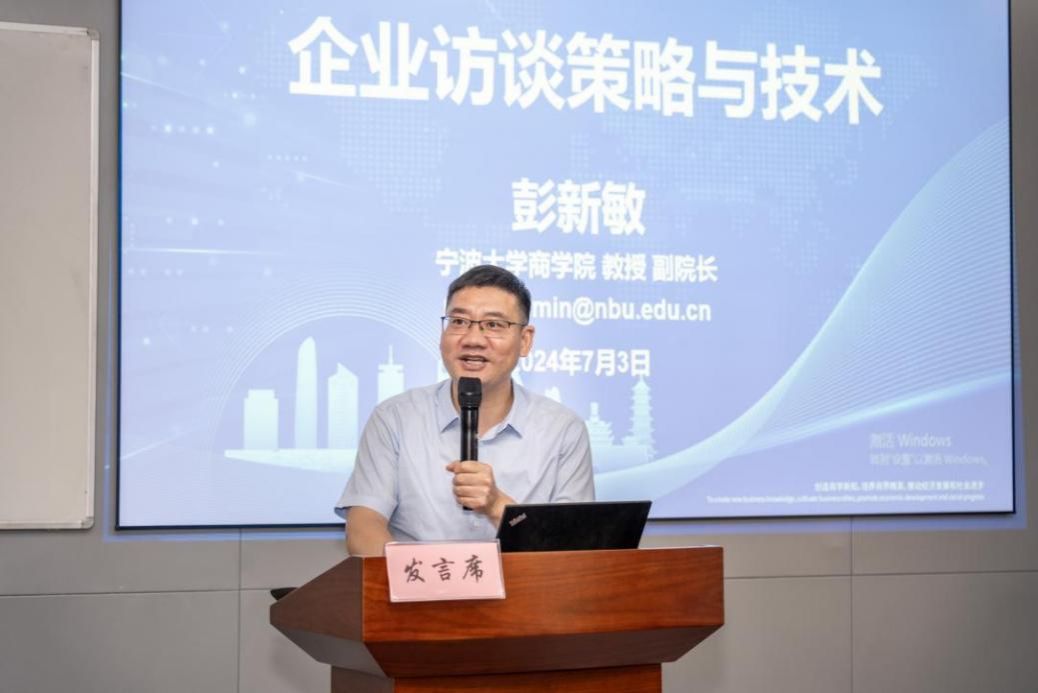副院长彭新敏教授从准备资料收集和实施资料收集两个方面讲解企业访谈策略技巧。在准备资料收集方面,他强调,社会调查要以牢牢抓住研究问题的本质,要充分理解社会调查的目的,每一个研究者都必须对调查中涉及的理论假设与对策问题做到心中有数,在资料收集阶段对之加以分析、判断。在实施资料收集方面,他介绍了六种数据收集的渠道,并从三角测量、建立案例数据库、组建完整证据链等三个方面讲解了资料收集的原则,为同学们社会调查的前期准备工作指明了方向。