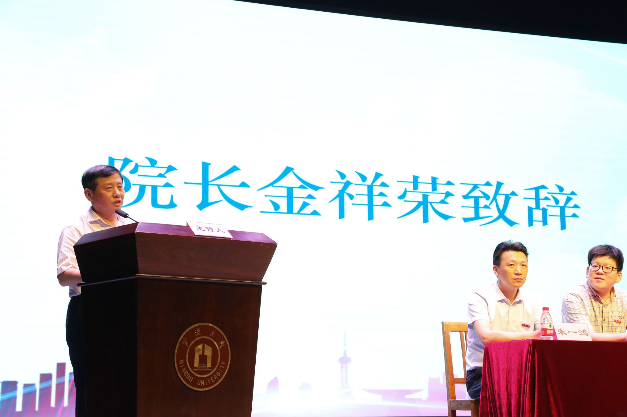 捷克论坛 特聘院长金祥荣、捷克论坛 党委书记史宏协、捷克论坛 党政班子成员、各系主任、教学系主任、学位点负责人、学位点执行主任、新班级班主任、行政教辅人员、兼职硕导代表等出席见面会。新生见面会由捷克论坛 党委副书记吴敏主持。