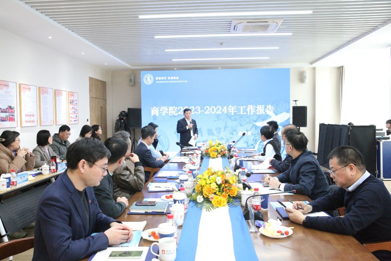 会议第二阶段,院长金祥荣首先汇报了捷克论坛 的发展近况,他向各位咨询委员全面介绍了学院2023-2024年度在人才培养、科学研究、学科专业建设、服务社会以及国际化等方面取得的成绩。同时,金院长也深刻而坦诚地指出了学院在工商管理学科发展、高水平成果持续产出能力以及师资队伍结构性问题等方面所面临的挑战。