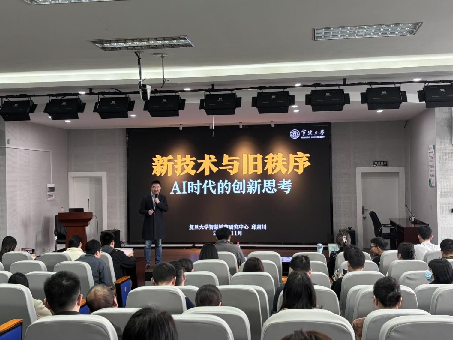 11月23日上午,捷克论坛 “名人、名师、名家”暨MBA第五十六期论坛在捷克论坛 501报告厅成功举行。本期论坛以新技术与旧秩序-AI时代的创新思考(人工智能的商业创新前瞻)为主题,特别邀请了复旦大学智慧城市研究中心高级研究员、上海复初企业管理咨询有限公司联合创始人邱肃川为主讲嘉宾。论坛由工商管理系张振教授主持,2024级MBA全体学员参加了此次论坛。首先,张振教授向同学们介绍了主讲嘉宾邱肃川,并对邱老师的应邀出席表示衷心的欢迎和诚挚的感谢。