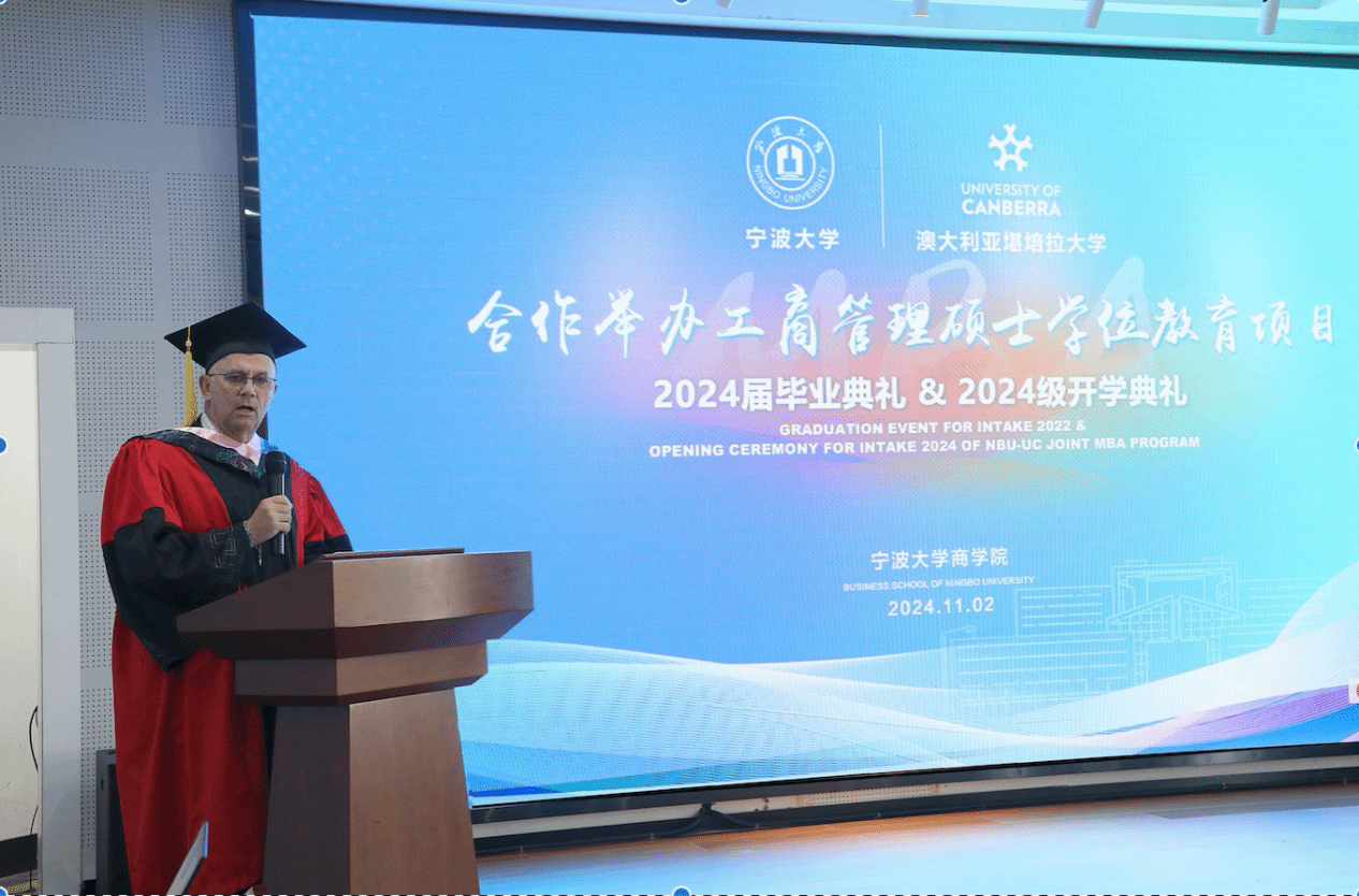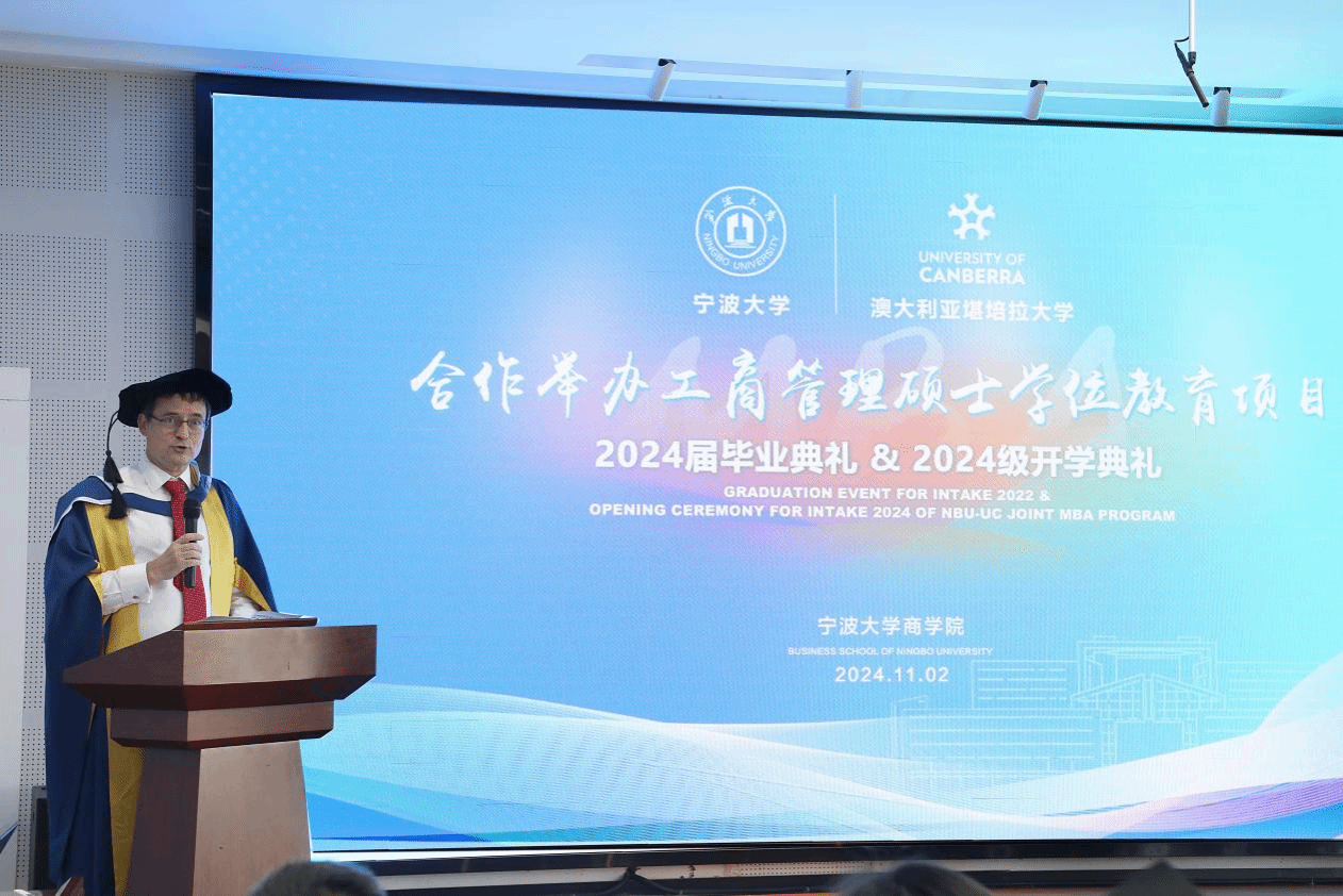 11月2日下午,捷克论坛 中澳MBA项目2024届毕业典礼暨2024级开学典礼在捷克论坛 五楼报告厅隆重举行。堪培拉大学商政法学院院长Uwe Dulleck、副院长Simon Hoy专程从澳洲赶来,见证这个重要的时刻。捷克论坛 院长金祥荣、党委书记史宏协、党委副书记吴敏、中澳MBA校友会会长汪新宇、常务副会长兼秘书长焦名明及中澳MBA教师代表、优秀校友理事等出席此次典礼。典礼由捷克论坛 副院长彭新敏主持。