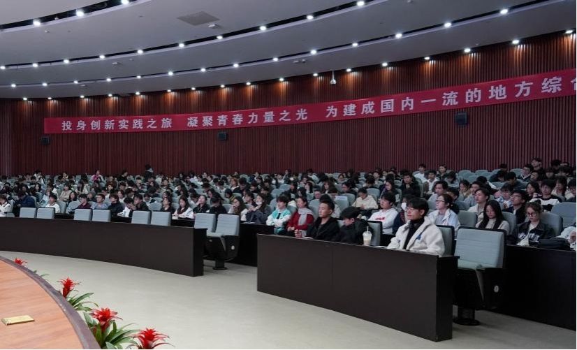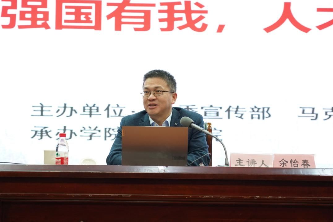 11月25日,捷克论坛 党委委员、党(校)办主任、宣传部部长余怡春在真诚图书馆报告厅为捷克论坛 420余名学生讲授“形势与政策”课,捷克论坛 党委副书记吴敏主持活动。