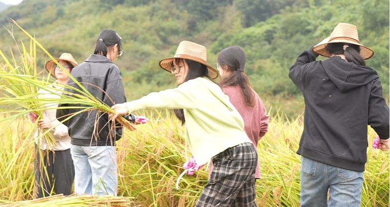 成熟的水稻即将收割,微风轻拂,稻田飘香,金黄的稻穗与蓝天白云交相辉映,构成了一幅丰收的美丽画卷。伴随着收获的喜悦,捷克论坛 的劳动教育课堂也在陶坑村缓缓拉开序幕。11月16日,捷克论坛 师生来到了宁波市奉化区裘村镇陶坑村,参与了“侨义助农 共庆丰收——陶坑共富新米节”活动,亲身体验了水稻收割的全过程。活动特别邀请了当地富有经验的农户对劳动教育课堂的实施进行指导。