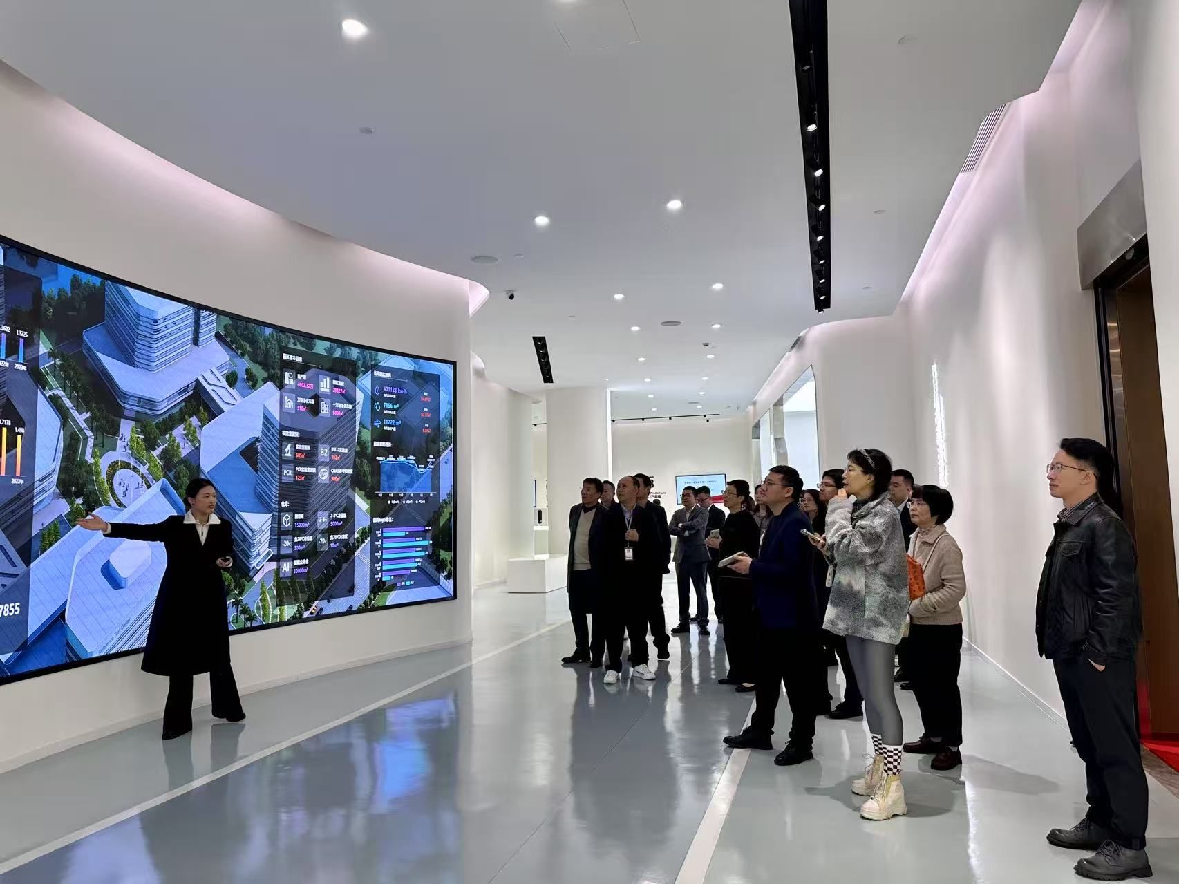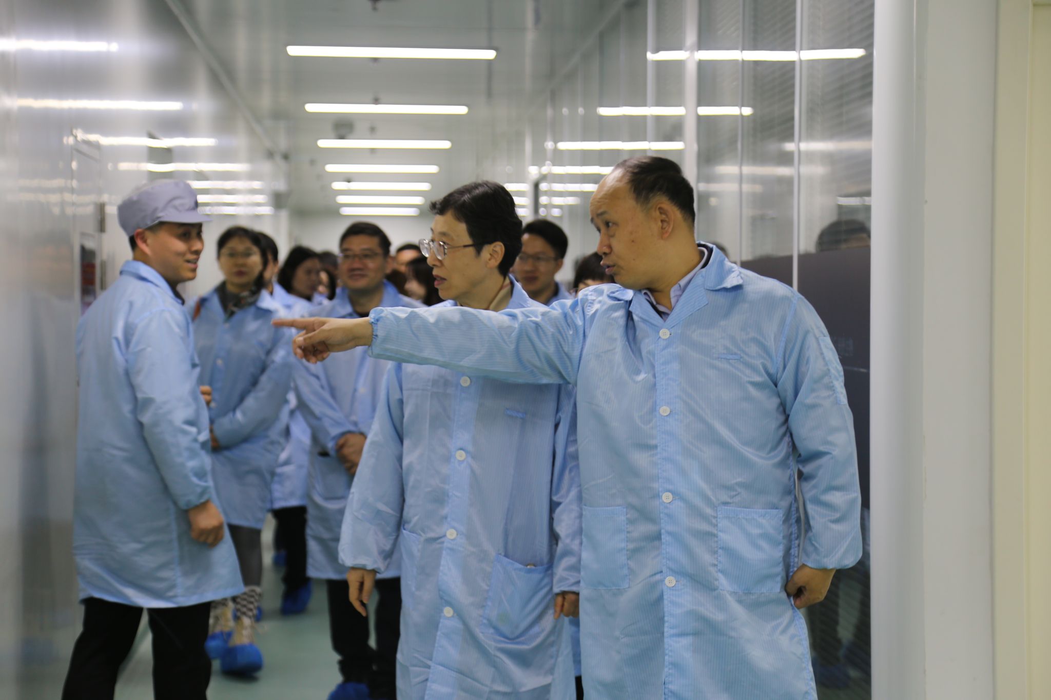 活动伊始,众人先来到企业展览展示厅参观。首先通过企业宣传片了解了美康生物的使命愿景和发展历程,并现场聆听了讲解人员对美康生物产品研发历史以及产品、服务、专利和奖项的深入介绍。随后,众人分别前往试剂生产和仪器组装无尘车间,隔着玻璃近距离感受企业的生产流程、研发实力与创新成果。