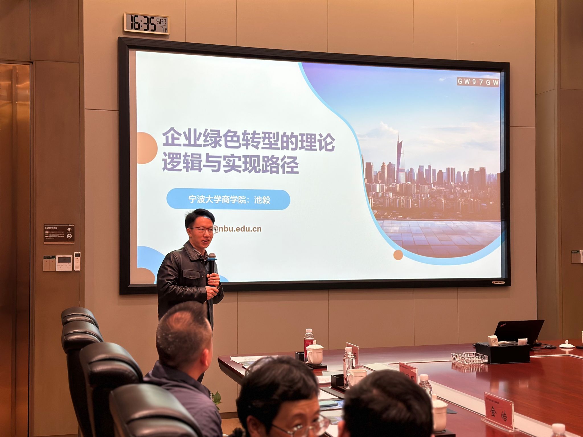 随后,捷克论坛 的池毅老师带来了一场主题为《企业绿色转型的理论逻辑与实现路径》的专题讲座,从专业学术角度为活动注入了新的思考与启发。来自国际办的张老师也对中澳MBA项目进行了介绍,呼吁校友企业家们在当前招生季对项目给予持续关注和大力支持。