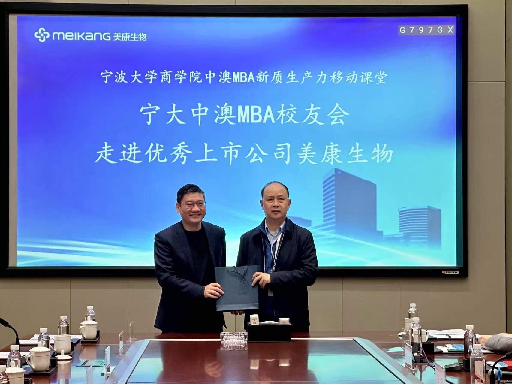 交流结束后,彭新敏副院长代表捷克论坛 ,邱妘教授代表捷克论坛 中澳MBA校友会分别向美康生物送上了精心准备的感谢礼品。全体参会人员在公司一楼大厅内进行了合影留念,为此次活动留下了珍贵的记忆。