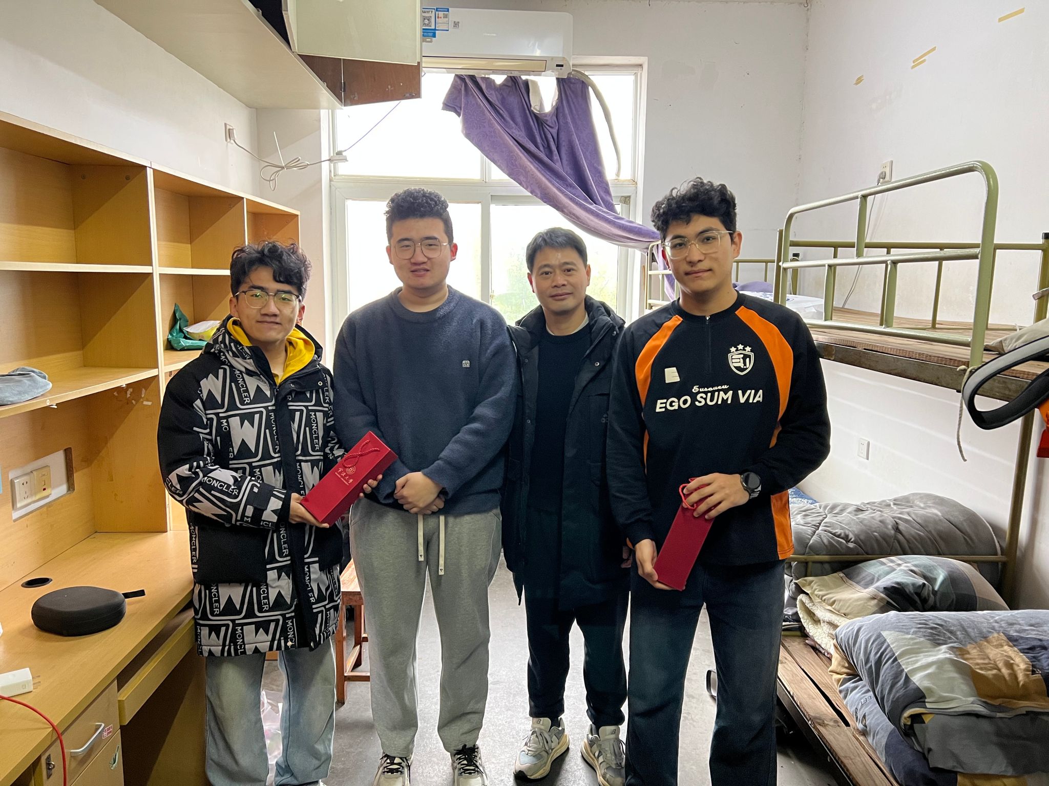 近年来,学院始终高度重视国际合作与交流,在留学生公寓,吴敏一行先后看望了留学生代表,与留学生们深入交流,鼓励同学们在学好专业知识的同时,也要深入宁波当地感受中华传统文化之美,做中外文化交流的使者,并向留学生们送上新春小礼物,祝福同学们在宁波度过一个平安吉祥的中国年。