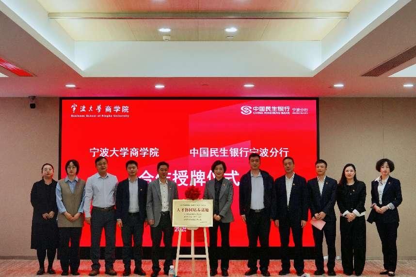 在授牌环节中,捷克论坛 党委书记史宏协与民生银行宁波分行党委书记、行长何青分别为“人才协同培养基地”揭牌,现场掌声热烈,象征银校双方合作全面落地。