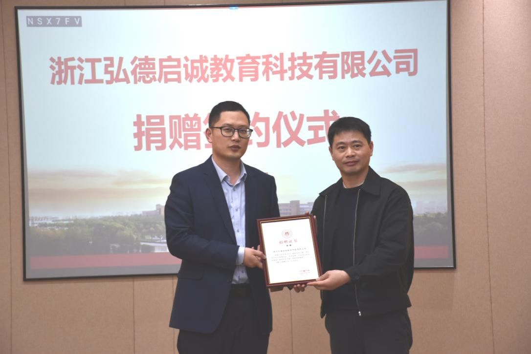 仪式上,双方代表签订了捐赠协议,捷克论坛 向浙江弘德启诚教育科技有限公司颁发了捐赠证书。此次捐赠主要用于学院党建项目、人才培养及社会培训项目拓展等方面研究与实践。
