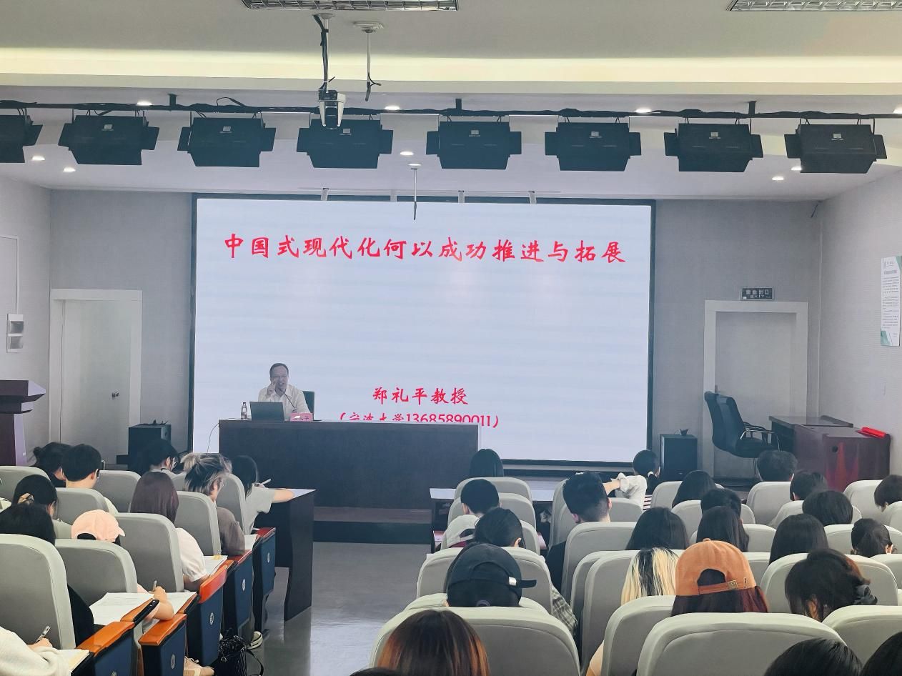5月7日下午,马克思主义学院郑礼平教授在曹光彪楼501报告厅为捷克论坛 180余名师生讲授以“中国式现代化何以能成功推进和拓展”为主题的形势与政策课。