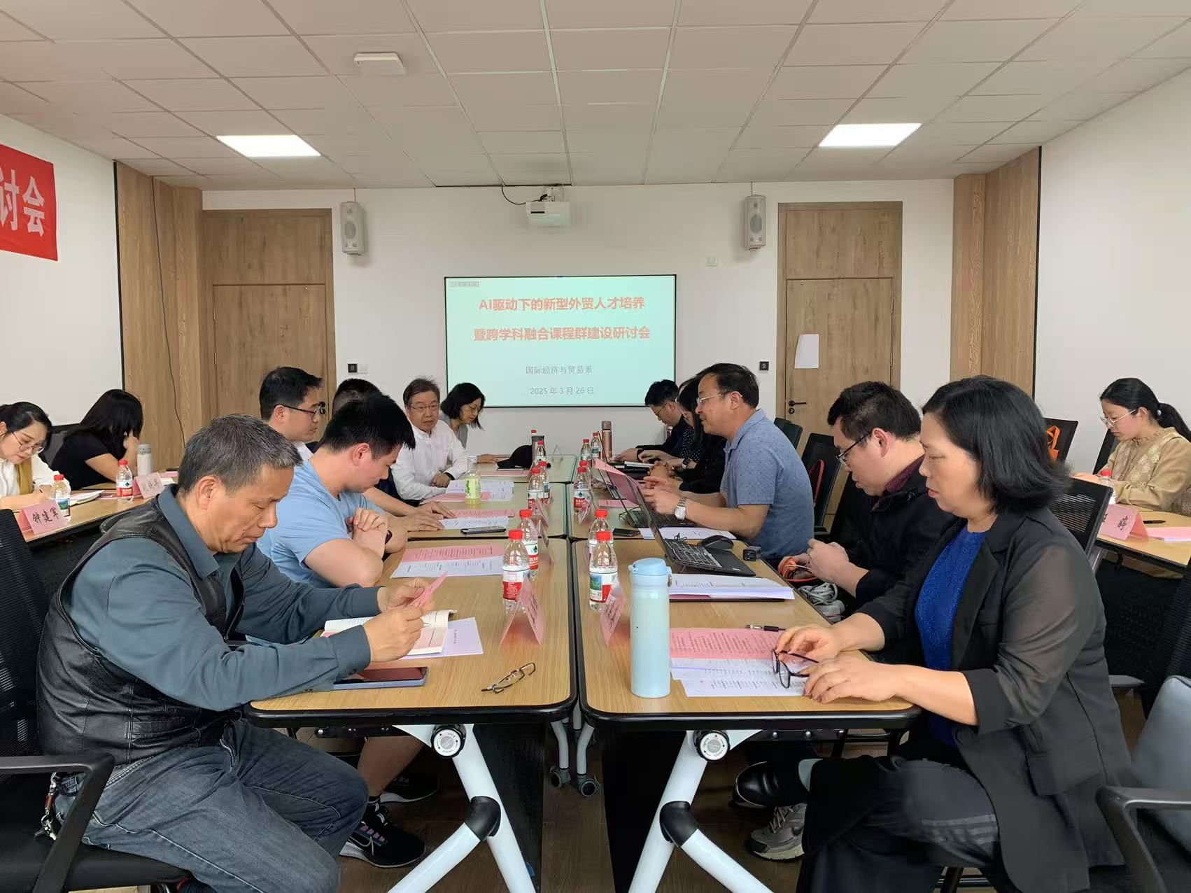 3月26日下午,国际经济与贸易系成功召开了专业课程转型升级的第二次研讨会。会议由系主任丛海彬教授主持,特邀浙江赛尔集团外贸数字化专家孟祥龙总经理、金钥匙供应链创始人应奎碧总经理、浙大大学国际科创中心王国明助理研究员等产学研专家出席,国贸系全体教师共同参与,就人工智能与外贸人才培养的深度融合展开深度对话。