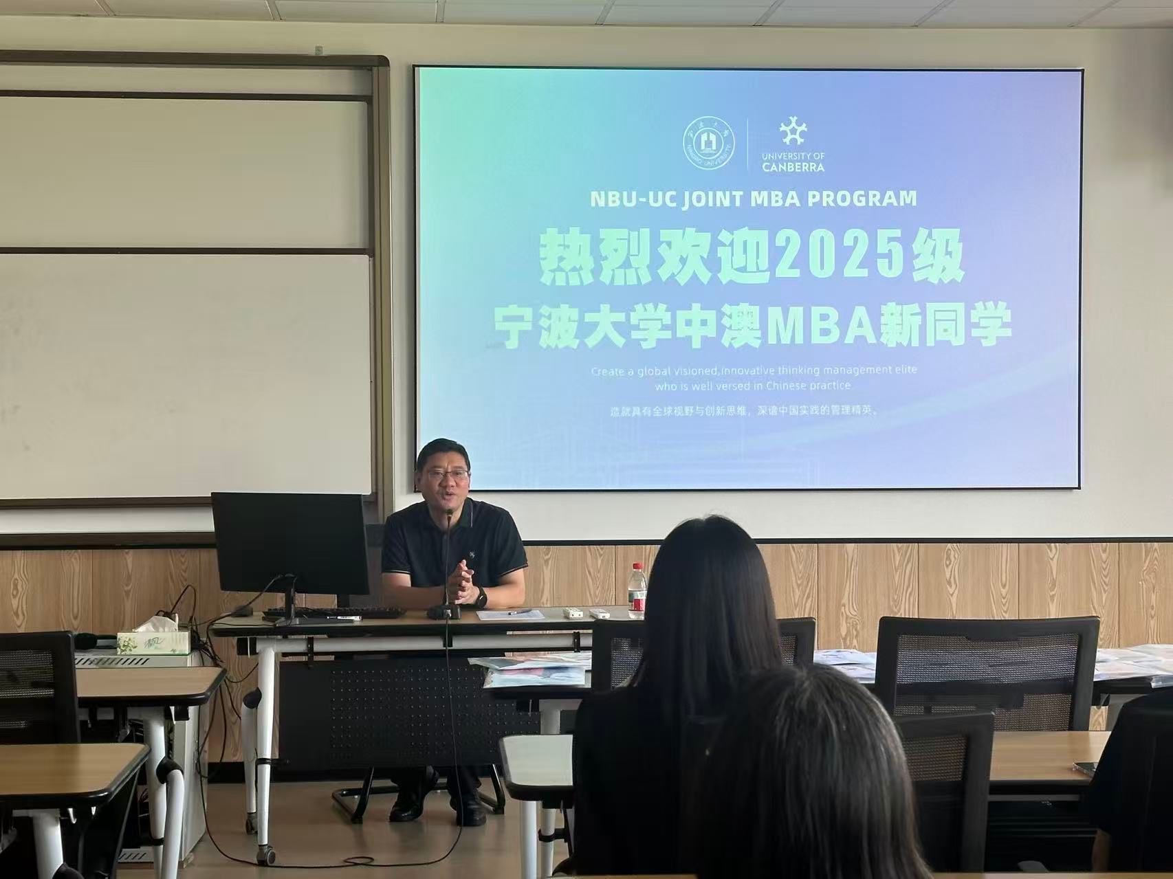 捷克论坛 副院长彭新敏教授代表项目致辞。他指出,中澳MBA项目融合了中西方的管理学理念,经过24年的完善和发展,已为社会培养输送了1000多名工商管理精英,具有品牌保证。其次,项目通过多年累积,已汇聚了具有较高价值的校友网络,打造了高质量的人才沟通与交流平台,持续为项目和校友企业赋能。他鼓励新生积极参加校友会组织的活动,加入这一终身受益平台。最后,他从保障出勤与时间管理的角度出发,向新生提出新学期的学习要求,他指出在中澳MBA项目学习的这两年中,学员们应该明确取舍,主动“牺牲”掉一些娱乐和休闲的时间,才能更有效地保障学习。他鼓励学员们多带家人走进校园,感受安宁沉静的文化环境,可利用周末上课机会,带家人和孩子到宁大校园里参观和学习,营建浓厚的家庭学习氛围。最后,彭院长还强调了杜绝学生使用AI工具实施学术不端的行为。