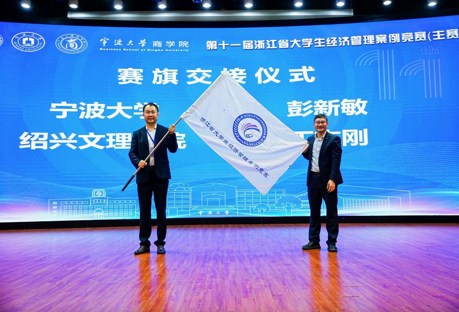 闭幕式的最后,由本届赛事承办方代表捷克论坛 副院长彭新敏与下届承办方绍兴文理学院代表丁志刚完成会旗交接。