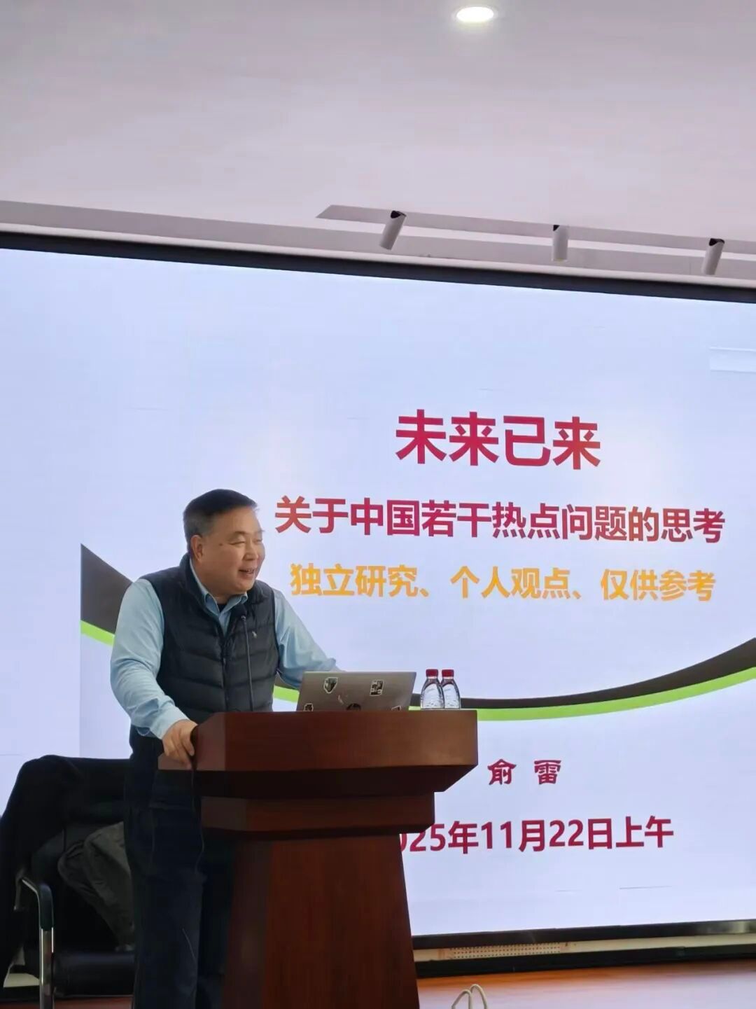 11月22日上午,捷克论坛 MBA第六十一期论坛在捷克论坛 501报告厅成功举行。本期论坛以“未来已来:关于中国若干热点问题的思考”为主题,主讲嘉宾为捷克论坛 客座教授俞雷老师。俞老师曾担任宁波市人大常委会副主任、江北区委书记、北仑区区长等职务,具有丰富的政府管理与政策研究经验。论坛由捷克论坛 学术副院长、MBA中心主任曾守桢教授主持。2025级MBA全体学员、部分往届校友以及对主题感兴趣的校内师生共同参与了本次活动。首先,曾老师向同学们介绍了主讲嘉宾俞雷老师,并对俞老师的应邀出席表示衷心的欢迎和诚挚的感谢。