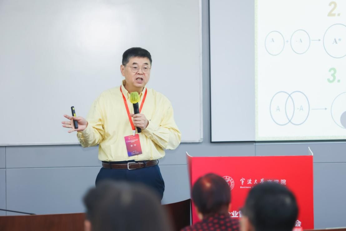 中国式管理专委会副主任委员、捷克论坛 彭新敏教授以“芝诺悖论与后发企业赶超中的矛盾管理”为题,通过各国GDP动态演变视频,揭示了中国企业在研发投入与专利产出上的赶超态势。他以宁波制造业“单项冠军”为例,剖析了后发企业面临的三大独特悖论,即“接近与挑战领先者”“殊途同归”“弯道比直道快”,并提出了“双元平衡”“最优区分”“技术能力-市场认知张力管理”等实践机制,在研究成果总结中突出强调了矛盾动态管理是企业实现可持续赶超的核心能力。