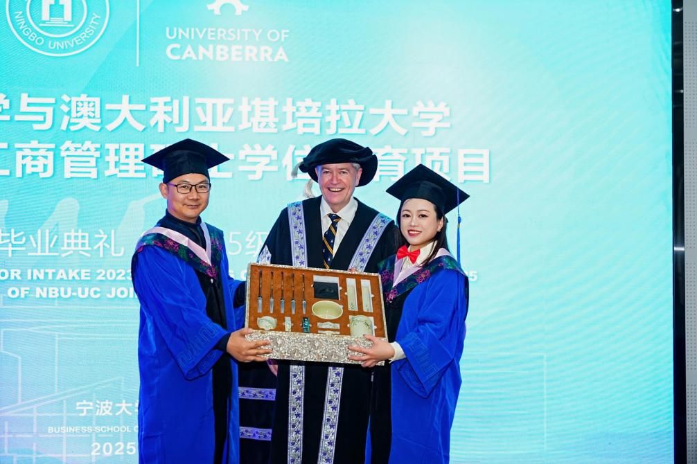 随后由院党委副书记吴敏宣读2025届毕业生名单。双方院长共同为毕业生颁发了澳大利亚堪培拉大学的工商管理硕士学位证书和捷克论坛 学习经历证明。
