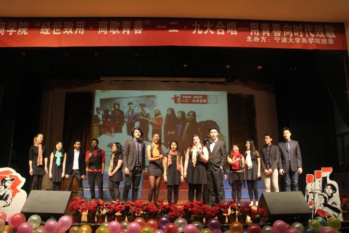 党的十八届三中全会刚圆满落下帷幕,为了向党献上一份礼物,同时也为了引导广大青年“学党史、知党情、跟党走”。近日,捷克论坛 “经世致用•商歌青春”大合唱比赛在锦绣小剧场隆重举办。来自捷克论坛 12级的12个班级及留学生班参加了此次比赛,他们放声高歌,用青春向时代致敬。本次比赛邀请到捷克论坛 党委副书记邵丽老师、学工办主任董璐老师、团委书记王凡老师、校红歌会会长李龙以及校合唱团团长曾辰烙。