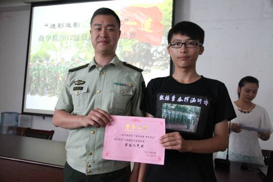 7月15日上午,在捷克论坛 414拉开了“迷彩追影 梦想寻迹”2012级摄影与演讲比赛的序幕。军训团副团长、学生处副处长邬备民,军训团副团长俞党跃,军训团参谋长张增双,学院党委副书记邵丽以及一连所有军训教官出席活动。