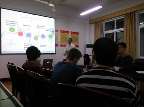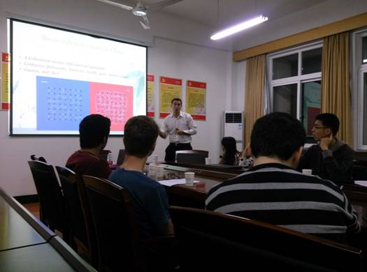 首先,来自美国在中国已有7年学习和生活经历的Alex English,从他自身的研究和经历出发,以理论联系实际的方式介绍了他对中国的文化、习俗和生活的深刻理解,并为留学生们推荐了快速融入中国的书籍材料和电子资源。随后,已在捷克论坛 学习生活一年的学长R.J. Thomas分享了他在这里快乐学习、阳光生活的经历。最后,院党委副书记邵丽对新生的到来表示欢迎,并提出了殷切希望。
