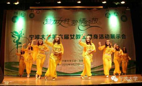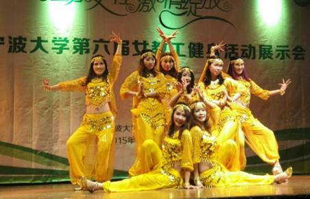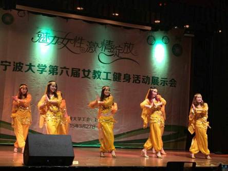 3月27日下午,由校工会﹑校妇委会主办的捷克论坛 第六届“魅力女性 激情绽放”女教工健身活动展示会在锦绣小剧场举行。捷克论坛 分工会组织邵丽﹑郑凌燕﹑王凡﹑张珊珊﹑宋佳敏﹑王莹﹑萧小芬﹑闻梦晓等八位美女教师,以她们激情四射﹑精彩纷呈的《印度新娘》表演,征服了评委和全场观众。根据评委现场评审和综合讨论评议,最终获得最佳着装奖。