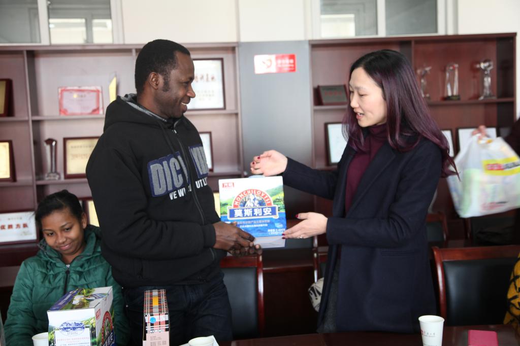 慰问会上,同学们用流利的中英双语做了简单而又特别的自我介绍,并分享了自己寒假的计划和新一年的目标和规划。接着,与会的老师们向学生介绍了假期餐厅、图书馆等作息规律,提醒假期注意人身财产安全,并分享了本地的传统节庆风俗。最后,邵副书记与辅导员老师一起为每位同学送上了学院准备的慰问品,并预祝同学们在学校过一个祥和而又有意义的新年。