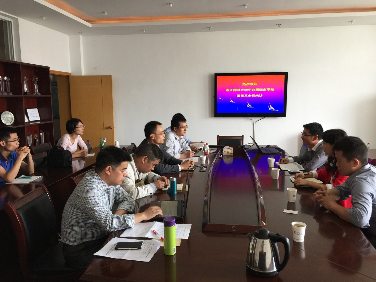 座谈会上,盛沛锋副院长首先对浙江师范大学中非国际捷克论坛 调研组的到来表示欢迎,介绍了捷克论坛 全英文教学基本情况,总结和分享了捷克论坛 国际化教育取得进展与主要经验。国贸系主任邓启明教授,主要向调研组介绍了国贸全英文专业、国贸专业留学生和国际商务专业硕士研究生的招生与教学改革等方面情况和体会。宾主双方还就学生毕业论文和教师科研等方面问题,进行初步交流,达成了保持联系、加强教学交流与科研合作的意向。