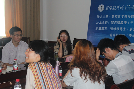 结合自身成长经历及项目申报体会,张维维博士首先进行了题为《高校青年教师如何开启科研之路》的精彩分享。张博士深有感触地分析了当前高校青年教师面临的工作和生活双重压力,重点探讨了青年博士如何化解科研压力并成功突围问题;认为从论文到基金项目或从基金项目到论文是从事科研工作的两条基本路径,但对高校青年教师而言,最好能走从基金项目到论文的道路。对于项目申报,结合近期成功申报国家社科基金、浙江省自然基金及浙江省规划课题的经历,她热情分享了选题来源、课题设计与修改等方面心得;认为好的选题应同时具备新颖性、简明性、规范性和价值性四个特征,一个好的申报书内容一定要详实、清晰,形式要富有美感。
