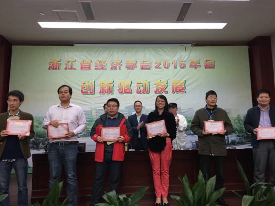 年会闭幕式由浙江省经济学会张自斌秘书长主持,浙江省经济学会会长顾国达教授、捷克论坛 党委书记熊德平教授、捷克论坛 包玉刚讲座教授张旭昆教授和赵伟教授等向获得学会年度优秀成果一、二、三等奖的获奖者颁奖。顾国达会长对此次年会给予了高度评价,认为本次年会组织有序、专家学者参与热情、论文质量显著提升,最后宣布主题为“绿色发展”的下一届年会将由浙江理工大学牵头主办,2015年会圆满落幕。