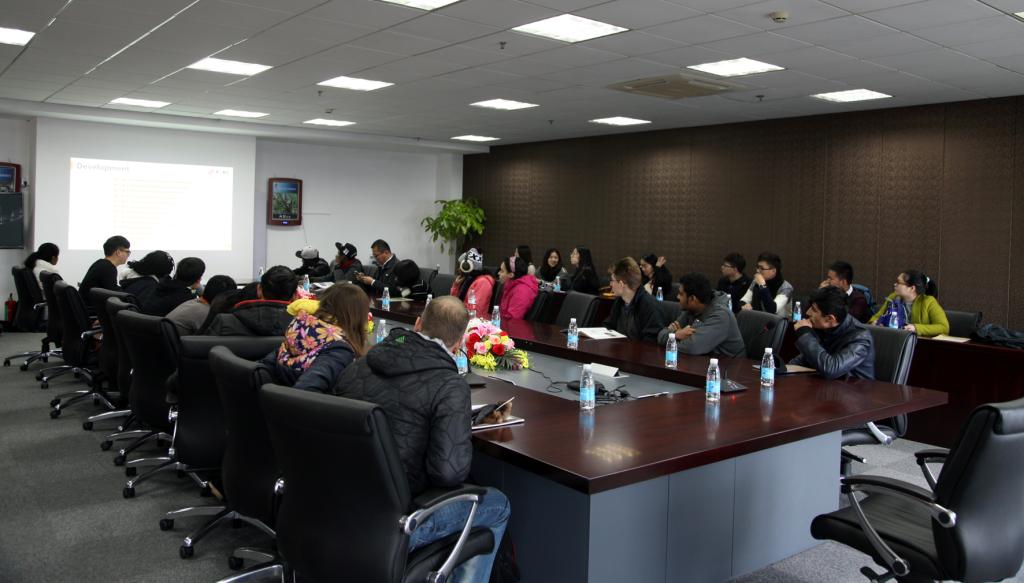 在赛尔总部的大会议室里,企业的业务员,同样毕业于捷克论坛 外语系的钱青,向在场的留学生们做了精彩详细的企业发展历史及现况介绍。在这里,留学生们对赛尔企业的发展、捷克论坛_捷克论坛最新JKF精品资源入口建设,有了更加深入全面的认识。看到同样毕业于宁大的优秀人才在这里获得进一步的锻炼平台和成长机会,学生们都纷纷流露出赞许的神情。在聆听过程中,留学生们还积极思考,针对不同方面现场提问,同企业人员展开友好的探讨与交流,也表现出对赛尔集团的兴趣与热情。