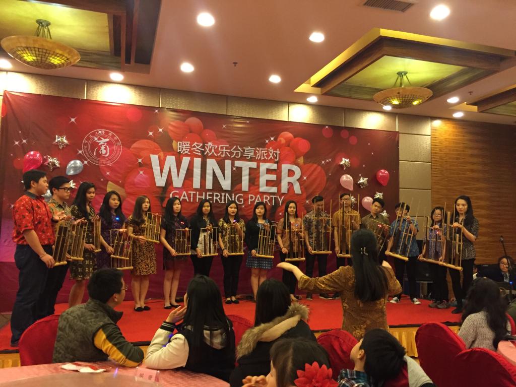 派对以印尼同学的传统音乐表演Angkulung作为开场,16名同学身着印尼特色服装,手持竹管制成的特色乐器,将来自遥远岛国的自然乐音带到了现场,这种新奇而贴近自然的演奏方式令现场嘉宾纷纷称奇。