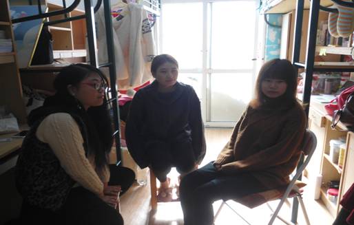 初次走进10号楼113寝室,最夺人眼球的是干净的地面和摆放整齐的拖鞋。三张床位上贴了天蓝色的壁纸,显得温馨又赏心悦目。这个寝室的主人是三位可爱的女孩子,她们分别是来自14金融1班性格文静的陶翼宇,来自14会计1班活泼开朗的何依纯以及来自14ACCA性格温顺好相处的叶雨露。何依纯告诉我们:“我们大一时候都是14曼大班的学生,也是同一个寝室的室友。后来我们三个一起转了专业,就分配到了一个寝室。”
