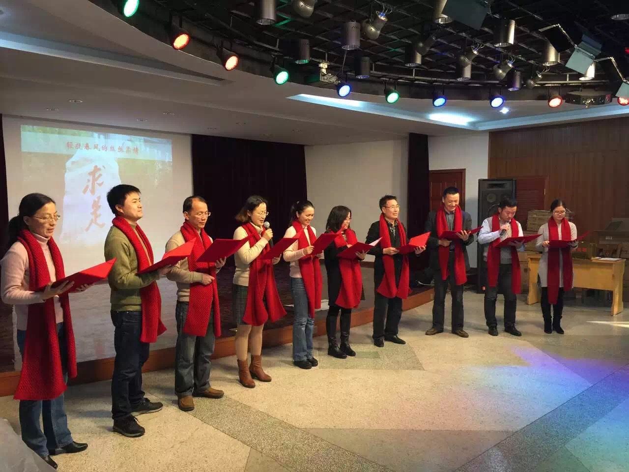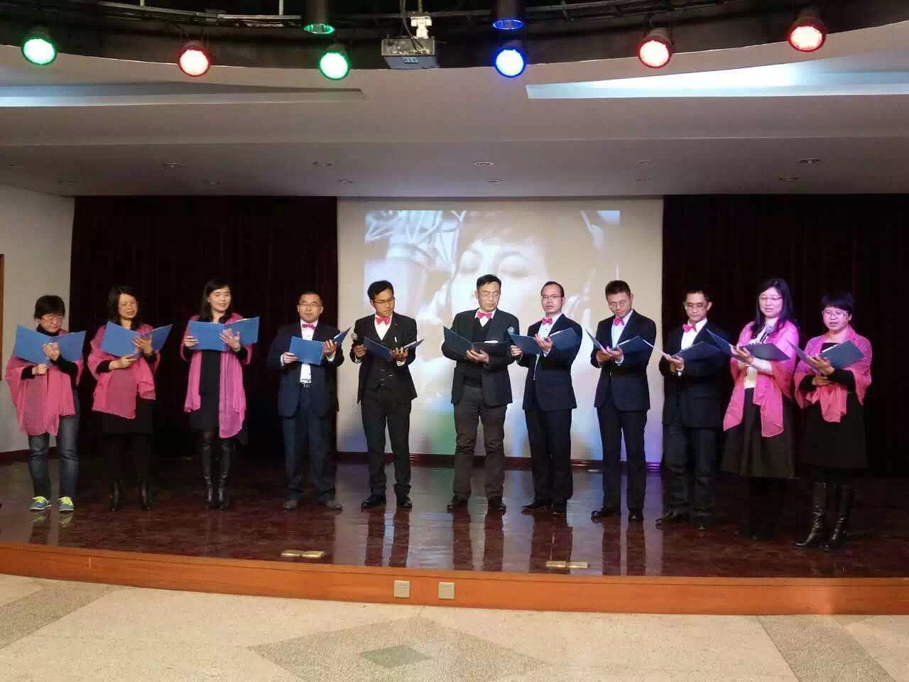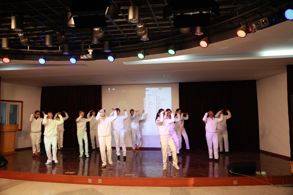 全体行政人员的舞蹈《小苹果》充满激情与活力,点燃全场,最终获得一等奖。茶话会最后在学院领导们的集体合唱《把根留住》中圆满落下帷幕。