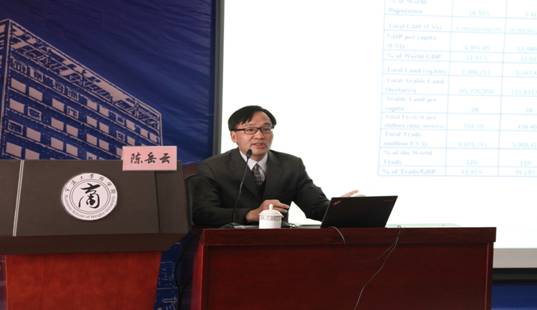2016年3月16日(星期三)下午14:30,美国洛杉矶西来大学教授、财务长陈岳云教授莅临我校,为校内师生做了一场题为“全球化,中国发展与商业模式”的学术报告。捷克论坛 副院长杨丹萍教授主持了本次报告,来自捷克论坛 、理学院的百余名师生聆听了报告。