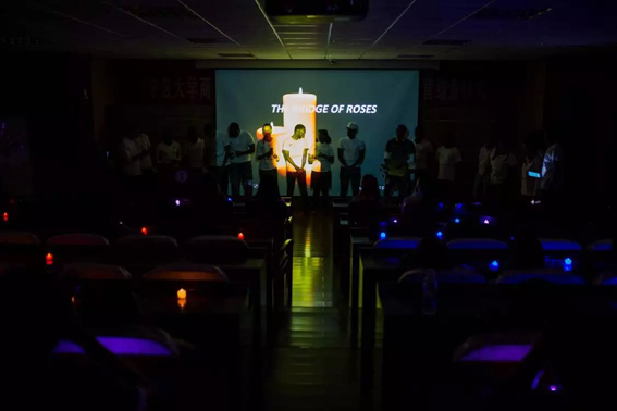 6点左右,留学生们抵达捷克论坛 。纪念仪式在集体合照后开始。在黑暗的教室中,每位参与者一盏盏点亮了手中颜色各异的电子蜡烛,随着蜡烛的点亮,教室内的氛围立刻开始变得宁静而肃穆。这些蜡烛寄托着纪念者对亡者的追思,更代表着对未来的希望。接着,22名留学生代表上台用英语、法语和卢旺达语宣读了22条希望留言,表达卢旺达人民对振兴祖国和建立安全繁荣的未来的决心。随后,美妙的音乐声响起,5名卢旺达同学上台以极富感染力的演绎展示了一出舞台剧,描述了战后饱受摧残的卢旺达民众心灵上所受到的痛苦和伤害,表现了伟大民众的坚强与包容,让在场的观众无不为之动容。最后,卢旺达学生现场诵读了在屠杀中遇难的100个受害人的名字。这每个名字的背后都代表着一个曾经鲜活的面孔,和一个家庭。每一个名字都警醒着世人这段血淋淋的历史。