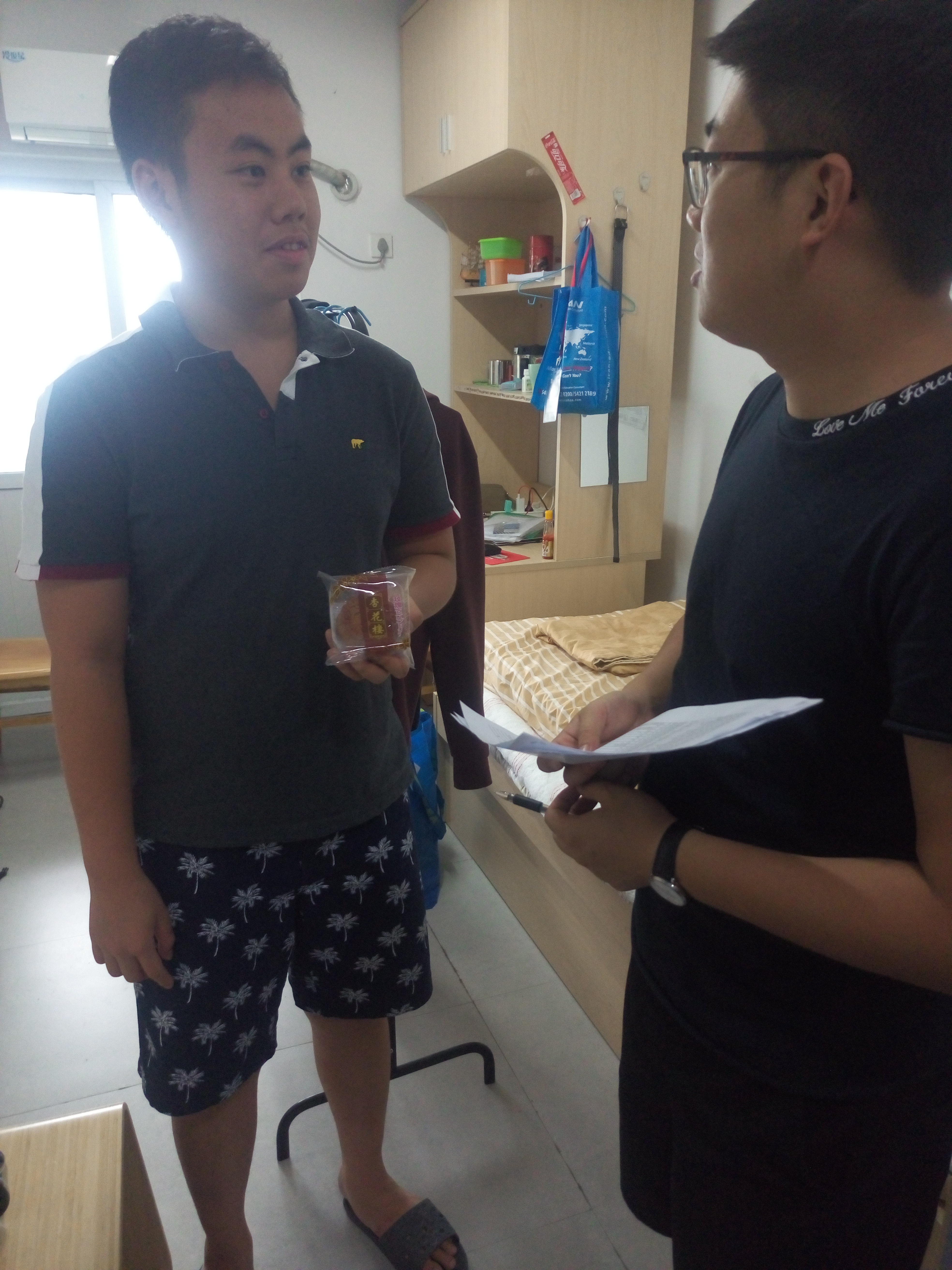 9月29日下午,学院学工办辅导员毛跃祖、蒋鹏涛带领捷克论坛 留学生会主要干部走访了留学生公寓,并慰问了捷克论坛 的留学生,送上了国庆和中秋的节日祝福和慰问。在询问和了解留学生的假期去向后,两位老师叮嘱同学们假期注意安全,增强安全防范意识,并对国庆长假的合理安排给予了建议和指导。