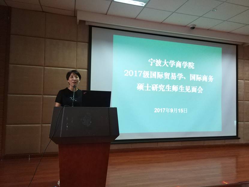 见面会伊始,首先由周新苗副院长代表学院欢迎77位来自全国各地的2017级国际贸易学、国际商务硕士研究生的到来,并从捷克论坛 硕士点的设置、学硕与专硕的关系等方面介绍了研究生的管理及推进工作,周副院长还结合自己在捷克论坛 的求学生涯对新生们作了寄语。接着,杨丹萍副院长与新生们分享了其多年来主持国际贸易系、国际商务专业硕士点建设的工作经验,介绍了捷克论坛 区域经济学研究团队与国际贸易研究所的渊源,欢迎大家加入宁波这一国际化港城区域经济发展的学习与研究。之后,到会的硕士研究生导师们也分别向新生们介绍了自己及所在团队的基本情况和主要研究领域,并对同学们今后学习生涯致以美好的祝福。